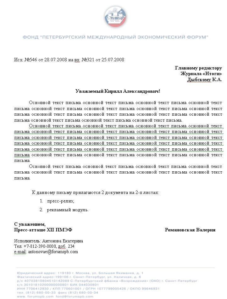 - желательно, чтобы бланк делового письма был с эмблемой организации, ее полным названием, почтовым и телеграфным адресом, телефоном, факсом, электронным адресом и банковскими реквизитами;