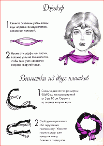 Среди используемых аксессуаров наиболее часто используются косынки, платочки, шейные платки и шарфики. Причем платков и косынок из разных тканей, разных гамм, разной формы выпускают столько, что выбирая нужный, разбегаются глаза. К тому же, еще и нужно знать, как завязывать платок и помнить хотя бы некоторые способы завязывания платков и шарфов, ведь немногие отдают себе отчет в том, как мы завязываем платки. Об этом мы и поговорим.